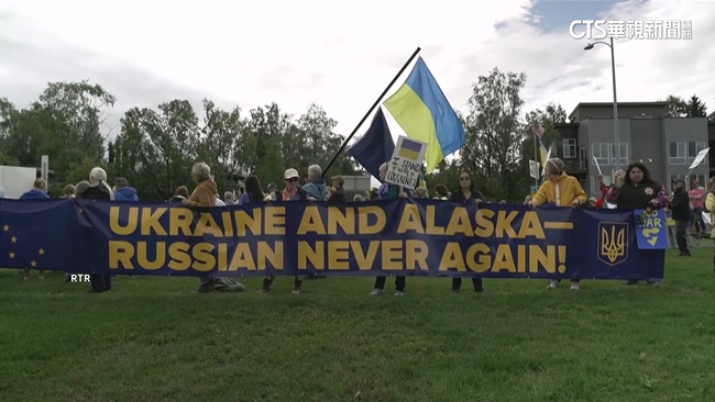 15日美國總統川普以及俄羅斯總統普丁,先後抵達美國阿拉斯加州第一大城安克拉治,舉行雙邊會談。場外民眾,也聚集在安克拉治進行抗議。