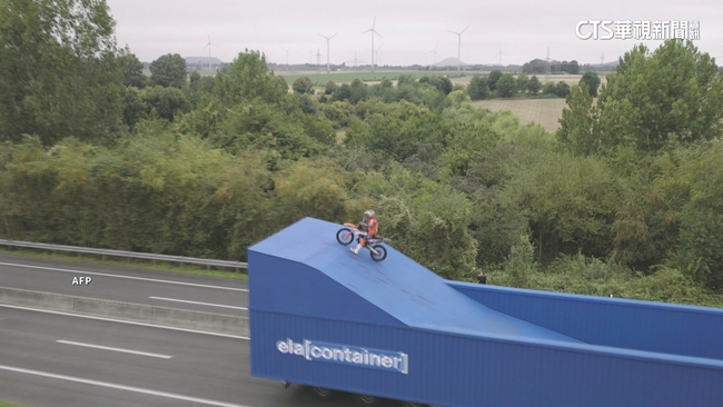 德國北萊茵高速公路上,來往車輛快速奔馳,只聞引擎聲不見車身,在這裡將上演一場,熱血刺激的特技表演秀,騎士戴好安全帽,催動油門摩托車蓄勢待發,竟然就從一輛正在行駛的卡車上,飛越到另一輛卡車,中間跨越有9公尺高的高速公路護欄。