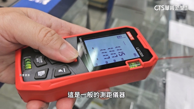 擋到牆壁上有個紅點,點個幾下發射紅外線,隨即跳出數據,這是一般的測距儀器,但現在還有更進階版,成為共諜工具,極光測繪儀不僅能用在一般的建築物,也能用在交通道路,包含是國道以及省道,建立圖資後,現在也成為中共,蒐集我國情資的工具之一。