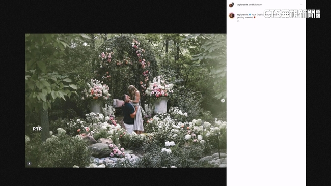 美國流行音樂天后泰勒絲,跟球星男友凱爾西訂婚了,她在IG公布喜訊,還秀婚戒照片。