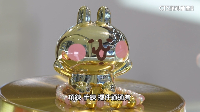 許多商品將黃金與,動漫遊戲等二次元IP結合,迅速爆紅,從蠟筆小新哆啦A夢還有三麗鷗角色,通通被「點金」,像是周大福跟吉伊卡哇合作,這款手鍊,只有0.88克,要價台幣9千多塊,台灣也有金飾品牌,跟卡娜赫拉聯名,項鍊手鍊擺件通通有,一條墜子至少8千元起跳,但買氣旺,帶動總體業績3成,消費族群大多為年輕人。