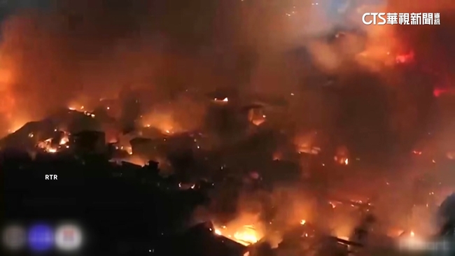 從空拍畫面看,熊熊烈火將夜空染紅,火苗更是迅速將民房吞噬!據路透社報導,火勢是從一棟木板鐵皮搭建的兩層住宅二樓竄出。由於建築材料多為易燃材料,火勢迅速擴大,當局徹夜灌救,直到昨(14)日清晨才將火勢撲滅。據當局調查,懷疑導火線為電線走火或人為疏失釀禍。當局也已設立臨時收容中心安置災民,希望早日讓他們重回家園。