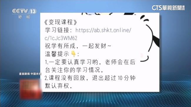 隨後詐團又宣稱購買高級課程,就能接到更好的兼職,結果課程不僅品質差,兼職賺不到錢,想退費也退不了,當事學生說:「後來我就說我不上了,然後他們說退不了,如果說要強制退的話,需要交違約金,2000塊錢(約新台幣8500元)。」