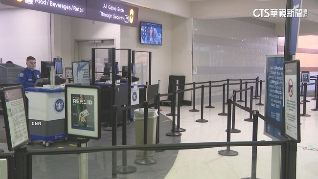 美國國土安全部部長諾姆說:「大家好,我是克麗絲蒂諾姆。」美國一座機場的安檢關卡入口,懸掛在牆上的螢幕正在播放一段國土安全部部長諾姆的影片,美國國土安全部部長諾姆說:「民主黨籍國會議員拒絕為聯邦政府提供資金,因此,我們的許多業務受到衝擊,我們大部分的運輸安全管理局員工,都在無薪工作。」