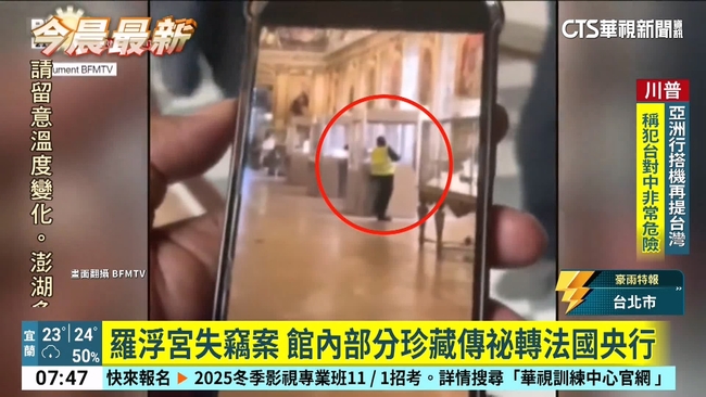 據報導指出,收藏法國王冠珠寶的阿波羅展廳部分館藏,已於警方低調護送完成轉移作業。另根據《路透社》消息,法蘭西銀行距離羅浮宮僅約500公尺,位於塞納河右岸,其地下金庫深達27公尺,是法國黃金儲備的重要儲藏地。