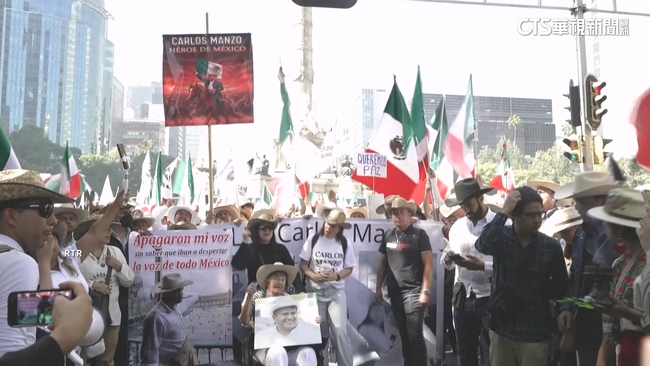 一旁的憲法廣場,聚集數千名揮舞著墨西哥國旗,和Z世代反抗象徵海盜旗的示威者。示威者赫南德茲說:「我們為了卡洛斯曼佐上街,為了他慘遭謀殺,因為我們想為他伸張正義,也想要為所有在罪犯手中,失去性命和財產的人們討回公道。」