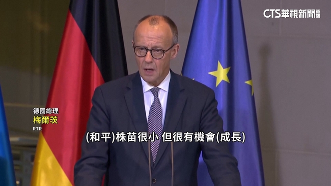德國總理梅爾茨說:「我們看到很大的外交進展,或許是2022年2月24日以來,最顯著的進展,如今已看到烏克蘭和平的機會,(和平)株苗很小但很有機會(成長)。」美國特使、烏克蘭總統和歐洲領袖在德國柏林磋商。歐洲領袖聯合承諾,由歐洲主導,組成志願者聯盟,協助烏克蘭重建為數八十萬人的軍力。烏克蘭不加入北約組織,但美國與歐洲同意提供烏克蘭類似北約第五條款的集體防禦承諾,也就是對一成員國的攻擊,將被視為對全體成員的攻擊。這是美國川普政府至今對基輔最明確、最強有力的安全承諾。