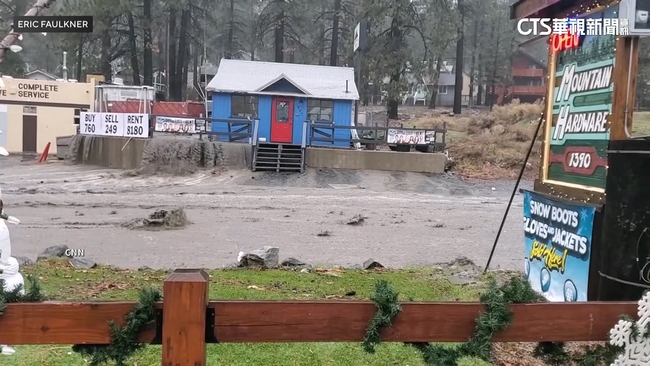 土石從山上滾下,淹沒這處山腳下的社區。可以看到汽車已經被沙土石塊吞沒,居民不知該如何是好。土石流從門窗湧入住家,起居間被一層厚厚的碎石覆蓋,家具電器恐怕統統報銷,屋主想清理不知從何下手。民宅主人說:「看到毀成這樣,我很心痛。」以往加州要好幾個月才能累積到300毫米左右的雨量,然而卻在短短幾天一口氣下完。不只河川氾濫,洪水還對地形地貌造成嚴重破壞,到處滿目瘡痍。