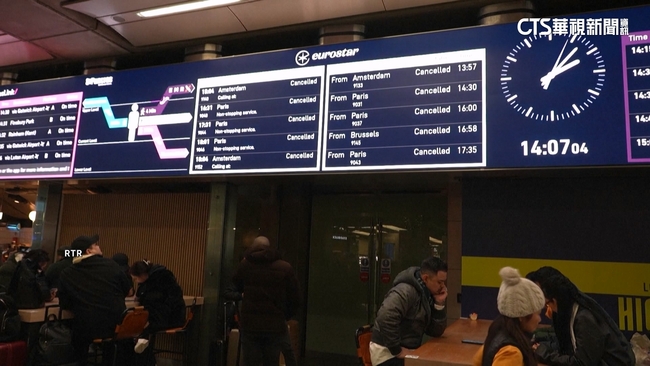 跨年假期將至,歐洲之星的英國倫敦車站萬頭鑽動,問題這些人潮無法疏散。告示牌顯示,許多歐洲之星的班次取消了。歐洲之星公司還宣布:所有往返倫敦、巴黎、阿姆斯特丹、布魯塞爾的列車全數暫停行駛;請旅客即時上網查詢時刻表更行內容,如果沒有車票,別前往車站。