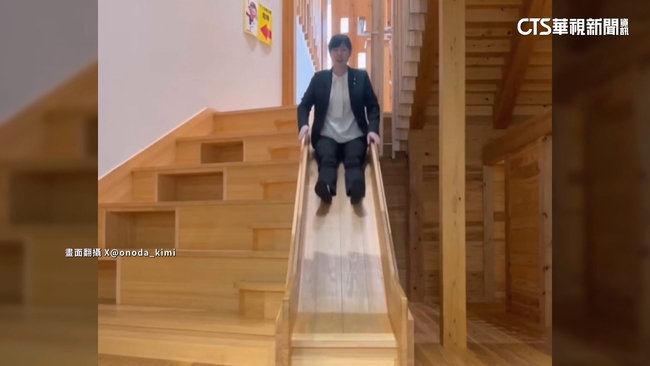 日本經濟安全保障擔當大臣小野田紀美2日在社群媒體發文,PO出自己在圖書館溜滑梯的影片。