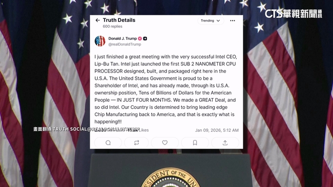 美國總統「川普」,當地時間9日早上在社群平台上發文,透露他跟英特爾執行長「陳立武」,進行了一場意義重大的會議。