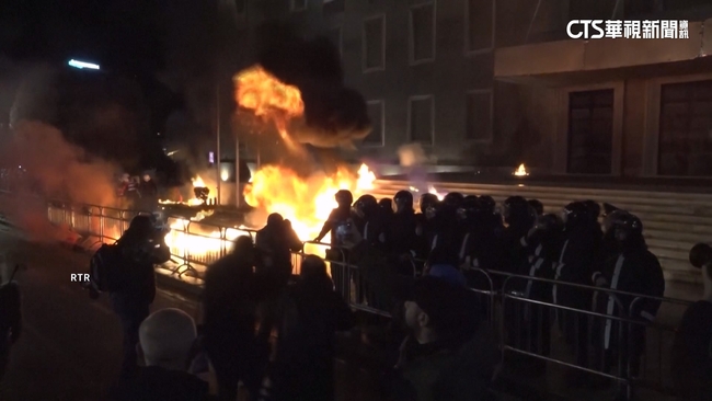 示威者朝總理辦公室投擲汽油彈,汽油彈落地後,發出震耳欲聾的爆炸聲,大門前的階梯頓時陷入一片火海,不只如此,示威者還朝大門施放煙火,逼得駐守在欄杆前的鎮暴警察,往旁邊閃避,還有警員拿著滅火器,試圖撲滅汽油彈爆炸後引發的火勢。