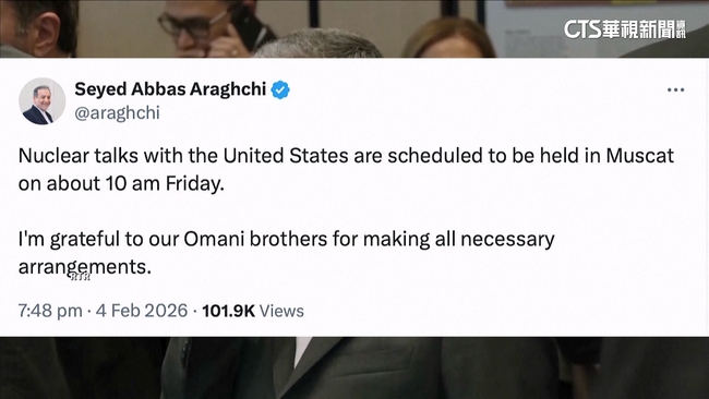 伊朗外長阿拉奇發文,伊朗會在明(6)日上午10點,跟美國在阿曼進行新的核談判。