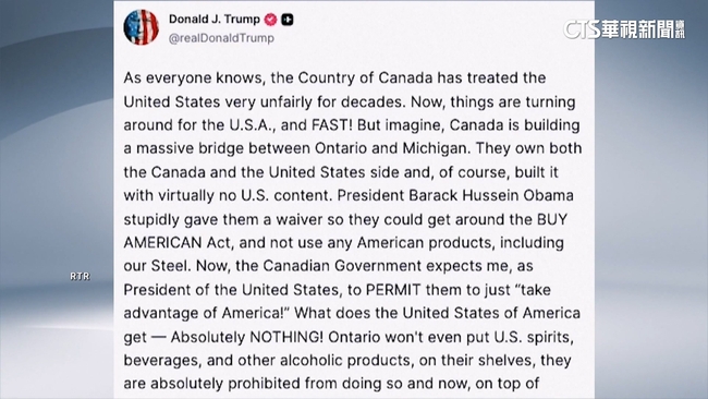 白宮發言人李威特說:「加拿大控制戈迪豪大橋的通行權,並擁有大橋兩岸土地,這是(川普)總統無法接受的,同樣令人無法接受的是,這座大橋的建設中,美國製造的材料使用量不足。」戈迪豪國際大橋橫跨底特律河,連接美國密西根州和加拿大安大略省,從2018年開工,耗資47億美元約1475億台幣,原定在2026年9月通車,預計能夠緩解附近另一座橋的交通壓力,並成為美加邊境最大的陸路口岸,建設成本預計透過,未來30年的通行費回收。