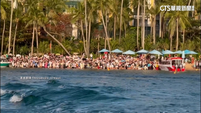 大批遊客全擠在沙灘上,搶著要搭眼前小船,黑衣女子疑似想下船,卻被工作人員大手一揮推回去,現場相當混亂,有遊客幸運上船後,拍下沙灘至少還有數百人還不知道何時能脫困,這裡是越南熱門景點富國島,不少國人趁著春節連假到此一遊,卻遇上當地大停電,行程全被打亂。