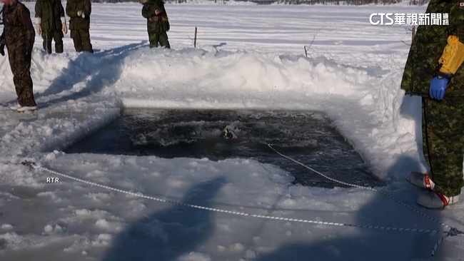 士兵們在湖泊冰層鑿開一個方形的洞口,模擬萬一有人踩到薄冰落湖,該如何自救與救人。這場年度軍事演習代號為「納努克-努納利夫行動」,當地氣溫最低可到零下50度。軍隊指揮官表示,極寒天候的作戰環境與一般情況完全不同,對士兵的體能與心理考驗更加苛刻,必須時常操演才能確保軍隊保衛加拿大北極地區的能力。