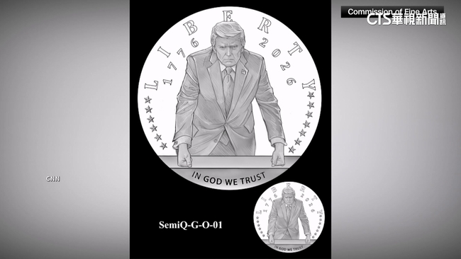 可以看到貨幣正面刻著川普穿西裝打領帶的肖像,CNN引述委員會副主席說法表示,這枚紀念幣預計直徑有約7公分,符合川普喜歡大而美的設計。
