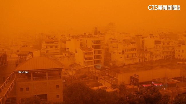 希臘克里特島1日遭到從撒哈拉沙漠吹來的沙塵暴襲擊,整座島嶼都被一陣濃厚的橘紅色煙霧籠罩,有旅客拿手機拍下這一幕有如科幻片的神奇景象。
