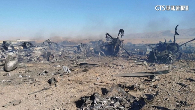 被燒成焦黑的美國軍機殘骸,變成破銅爛鐵散落在地面上,面目全非,只剩下螺旋槳、輪胎等設備還清楚可見,美軍極限營救失聯的F-15E第二名飛官,伊朗當局釋出畫面,顯示美軍搜救任務其實損失慘重。伊朗軍方發言人佐法哈里說:「好幾架美國軍機遭到攻擊,包括兩架C-130軍用運輸機,和兩架黑鷹直升機,迫使他們在伊斯法罕以南地區進行緊急降落。」