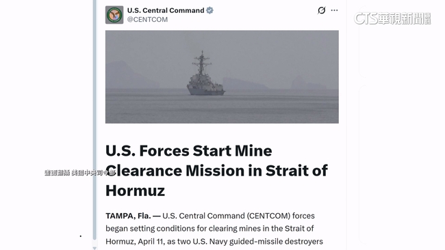 美國中央司令部今(12)日發出照片,指出美軍「麥可·莫非號」,以及「小法蘭克彼得森號」共兩艘驅逐艦,已經穿越荷姆茲海峽,將對接下來的掃雷行動展開前置作業,指的就是伊朗軍隊布下的水雷,但對此伊朗軍方馬上駁斥,伊朗半官媒塔斯尼姆通訊社報導,伊朗軍方強調,對荷姆茲海峽有「完全且睿智的控制」,也指出只准許民用船隻,在特定條件下通過海峽,任何「軍事」船隻試圖通過海峽,都將被嚴厲處置。