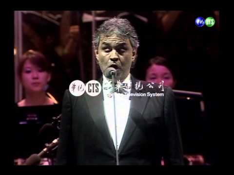 波伽利一開口唱,清亮而動人的嗓音,震撼人心。眼睛雖然看不見,波伽利表情非常生動,有如天籟般的歌聲迴盪台中夜空。一首威爾第的歌劇名曲,波伽利時而渾厚,時而高亢。高音的穿透力,讓兩萬位歌迷聽得如痴如醉,一首接著一首的義大利歌謠,波伽利都由指揮牽著出場,還用中文向大家道謝。