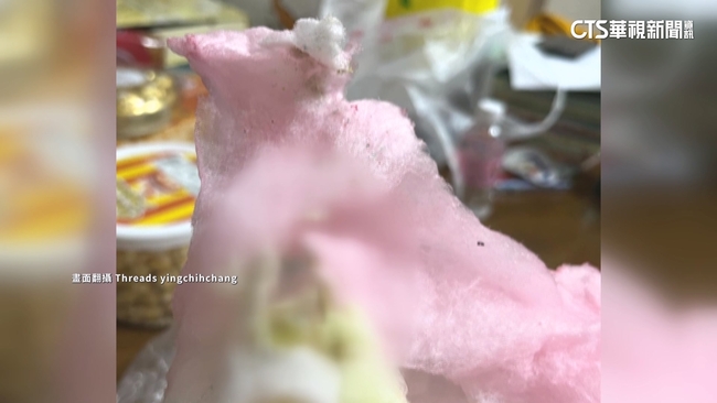 台中民眾在中央公園燈會現場,買了1支棉花糖,回家後吃了幾口,發現裡面有硬硬的灰色物質,懷疑是不是發霉了,覺得很噁心,但有其他民眾認為,棉花糖不容易存放,應該單純只是變硬的糖渣,或者被竹籤弄髒了,棉花糖是不是發霉,還有待確認,市府清查,這支棉花糖,可能是來自違規的流動攤販,食安處將會派員稽查。