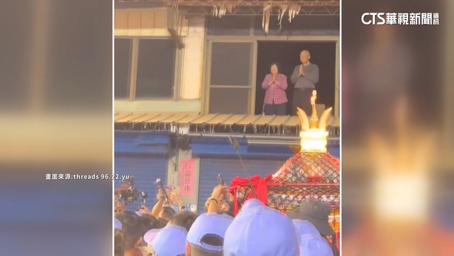 大甲媽鑾轎6日經過雲林西螺大橋時,隨行香客多到把整條路塞爆,萬頭鑽動的上方,這棟建築的二樓鐵皮,阿公阿嬤站在藤椅前雙手合十,虔誠參拜,跟下面擠到水洩不通的香客人潮對比,阿公阿嬤的位置,宛如遶境搖滾區,票價還是最貴的那種,大甲媽信徒說:「從這邊看,有好幾萬人。」阿公坐在藤椅上,重現當晚和妻子,待在最好的位置參拜媽祖的模樣,阿公說,每年鑾轎經過,他跟妻子都會像這樣爬上梯子上二樓倉庫,站在紗門前拜拜。