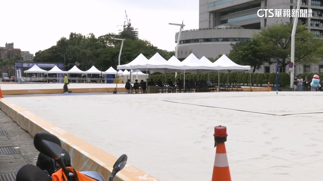 目前工作人員,忙著架設選手休息區,進行最後加工作業,沙灘排球場18日到21日,競賽結束後當天下午就會拆除,但為了配合賽事,一直到25日都會進行交通管制,包含新仁愛路全線車道,北市信義警分局,除了調撥車道,也會做號誌時相調整。
