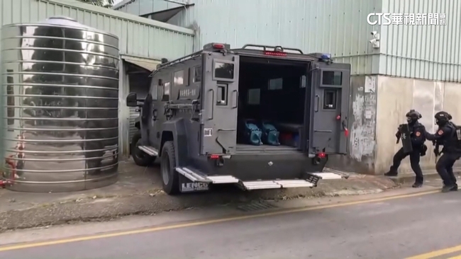 刑事局警方埋伏跟監,掌握製毒工廠,藏身在台中太平山區的鐵皮屋裡面,嫌犯為了逃避警方追查,除了晚間才會進出,所使用的車輛也懸掛假車牌,警方見時機成熟,出動裝甲車進行攻堅,撞破鐵捲門之後,全副武裝的維安特勤隊警員,荷槍實彈衝入裡面,當場將2名製毒嫌犯壓制在地。