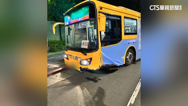 這一撞,車頭左前方大面積破損,幾乎被削到不見變形,車殼零件也散落路旁,庇護島更缺了一角,重回現場,可以看到缺角的庇護島,才剛完工沒多久,而這起事件,是發生在北市松山區,南京東路四段上,20日晚間8點多,疑似天色昏暗,公車駕駛又沒注意到。