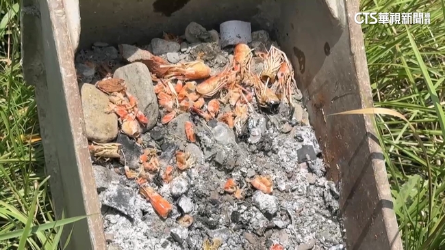 烤肉架上炭火烤,一般人都是這樣烤蝦,不過有人這樣烤,怪手鏟斗鋪了石塊,還放了好幾隻蝦子,在大太陽下做「岩燒蝦」,這是真的嗎,記者VS.當事工人說:「(為什麼會有這樣子的創意)下班時間,大概買多少蝦,感覺很好吃。」