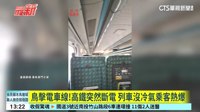 收假開工出狀況!高鐵接近中午的時候突然斷電,搭車乘客錯愕,而根據了解斷電是因為鳥擊。