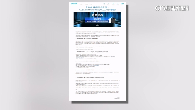 根據安克台灣官網公告,確認在台灣的產品中,只有一種型號,也就是基礎款產品A1257名列回收名單中。安克表示,品檢時發現供應商使用的部分電芯未經批准,可能造成安全隱憂,目前官網已經緊急將這款型號的行動下架停售,也主動召回售出產品。安克也承諾絕不會推託問題,同時將補償已購買的消費者。