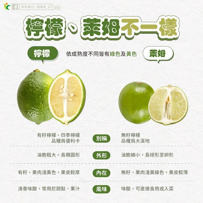 許多人會以顏色分辨檸檬和萊姆,但其實這方法是錯的!農糧署就指出,可從外型、果肉、風味和有籽無籽等4撇步判斷它們的真實身分。