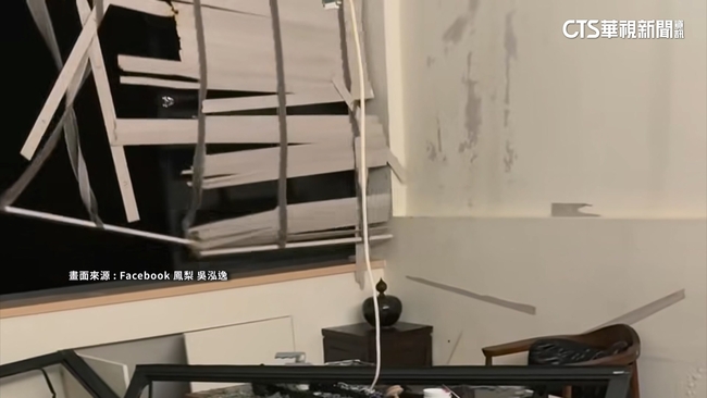 包括窗架玻璃全都消失不見,只剩下百葉窗簾搖搖欲墜,因為窗戶破了雨水灌進家裡,屋內也亂成一團,天花板輕裝潢被吹落椅子也倒了,室內地面也全部濕答答,鳳梨說風雨真的不是一般地可怕,問粉絲們大家平安嗎。