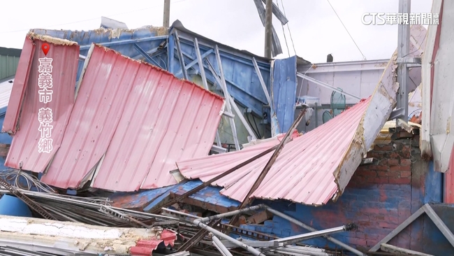 搭起帳篷勉強度日,工寮兼住家,屋頂沒了家當也強風掃光光,沒地方睡只能克難先用帳篷頂著,嘉義縣義竹鄉受災戶VS.記者說:「颱風掃來(屋頂)就直接掀走了,真的有夠恐怖的,不曾這樣過,(現在還住這邊),不然要住哪裡,(不會覺得危險嗎),也沒地方住。」