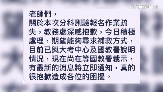 教育部主祕林伯樵說:「去做這個變動都會造成,試務上面產生不確定性,也會對公平性產生影響,所以這邊就不能夠去做這個變動,國教署之後也會再去做後續的確認,包括報考資料的確認表部分。」但這疏失攸關到考生未來,各單位仍不放棄,家長會也願意承擔相關費用,只希望能給考生們爭取一個機會。