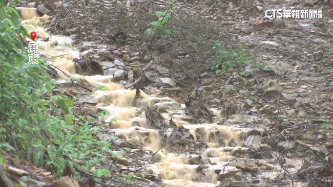 山區雨水不斷從山坡沖刷下來,一旁排水溝水流湍急,連水管都被沖斷,華視記者蔡銍湣說:「記者現在站上的就是丹林部落丹林吊橋,記者旁邊這一條溪流就是林邊溪。」屏東來義鄉持續下起豪雨,林邊溪河水不只上漲,水流速度快,沖刷力強,同時夾帶大量泥沙,形成滾滾黃流,就怕越晚雨勢越大,屏東滿州分水嶺部落51位居民進行預防性撤離,住進渡假村,居民無奈。