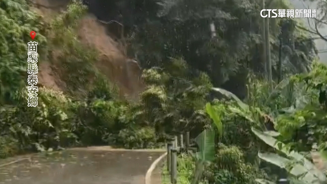 苗栗縣山區豪大雨不斷,泰安鄉的大安聯外道路就發生嚴重坍塌,當時民眾開車載著小孩經過,發現邊坡異常移動,立刻停車,還在想要不要開過去的時候,整片山坡就塌了下來,大家嚇得尖叫連連。大安聯外道對面的士象道路也有山壁滑落情形,目前因為雨勢太大,搶修暫緩。