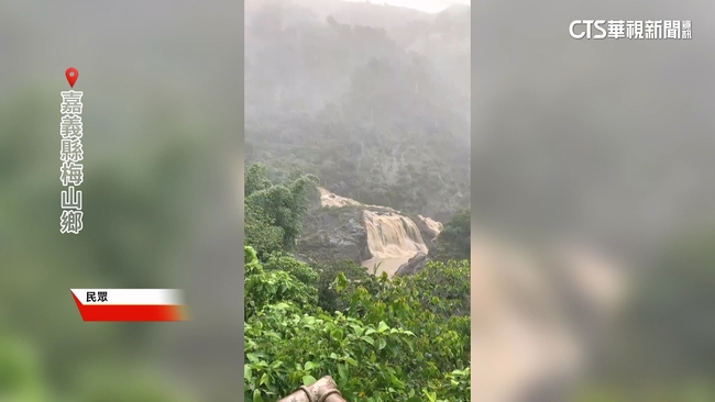 嘉義縣梅山鄉碧湖村上游,滾滾泥流,就像是巨大的瀑布,不斷往下游沖刷,有民眾拍下影片,驚呼那氣勢太可怕。當地居民表示,附近本來就有水流,但因為大雨影響,現在的場面已經非比尋常,居民也互相提醒要注意安全。