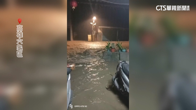 和平溪的溪水暴漲後,如一頭凶猛的猛獸,直接翻騰出岸際,朝民宅方向,衝了過去,只見滾滾泥水,想擋也檔不住,整條路成了河道,這裡是高雄六龜新發里,昨(30)日晚間8點多開始,大雨狂炸高雄山區,桃源區往四社部落周邊,便利商店外的道路被泥水覆蓋,民眾想要往外走,得鼓起超大勇氣。
