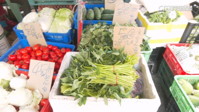 以北市永春市場這一攤為例,漲得最凶的大多是葉菜類,高麗菜從一斤20多塊漲到60元,大白菜一斤現在也要35元,大黃瓜一條更是翻倍漲,以前一把地瓜葉不用10塊錢,現在卻要至少30元才買得到,採買民眾說:「都很貴啊,我買一顆高麗菜都快要200元。」採買民眾說:「現在都是一把30,啊兩把50,可是都變小。」風災雨災接連來肉菜價格往上飆,不只消費者荷包在哭泣,農民與攤商的心可能也在淌血,就盼著老天賞臉別再有更多災情。