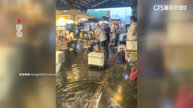 市場因為大雨,積水到腳踝,但店家照常做生意,由於地勢低窪,積水不斷流進市場,店家只能用板凳把東西墊高,民眾形容這裡像是水上市場,還有人說,這樣子都還有客人,大家都很厲害,店家也只能苦笑。彰化連日大雨,社頭鄉的道路幾乎變成河流,大水順著道路流下,車輛也只能改道行駛。