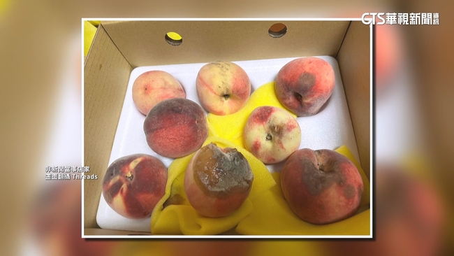 6月份也有消費者,買了2盒回家,結果紙箱裡的水蜜桃,表皮果肉潰爛只有一顆能吃,在地店家透露,類似狀況其實每年都有,非當事店家廖先生說:「水蜜桃很不好保存,所以說盡量回去就冰,要不然蓋子馬上打開,最怕就是讓它悶到,悶到就會像剛剛(照片)那個狀況,有的人回去忘記啊,放個2天3天,哇啊,一打開全爛的。」