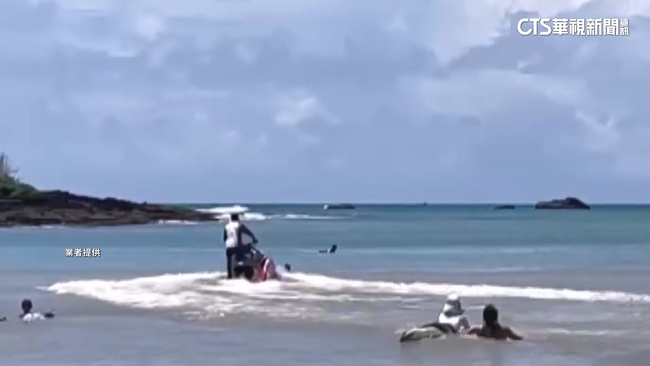 浪濤不斷拍向岸邊,這時乘坐水上摩托車的救生員,看見眼前有民眾載浮載沉,立即發動引擎朝著目標而去,過程中激起洶湧浪花,終於抵達目標,將人給救起,接著又往前挺進,將另一位等待救援民眾救上車,英勇救援過程全被拍下,沒想到事後業者面臨萬元罰款。