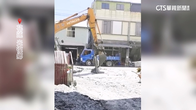 這裡是花蓮光復鄉,被洪水侵襲後,居民家園通通被厚厚的淤泥覆蓋,除了鏟子超人總動員外,也有不少熱心業者,帶著多台重機具進駐光復鄉,希望能為災民盡一份心力。