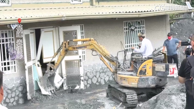怪手破門而入,一探被泥流沖垮的家園,華視記者趙若評說:「屋主鄭太太,一看到裡面竟然是被大量淤泥給掩埋的時候,她發出了一聲驚呼。」佛祖街居民鄭太太說:「現在房子進都進不了,我來這邊二十年了,全都毀於一旦了。」