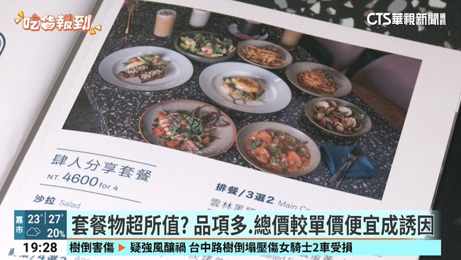 餐酒館副理巫家浤說:「基本上的話(點)套餐的比例可以落在8成左右,把我們一些招牌菜色想要主打的料理,大家就是可以透過套餐的形式用比較便宜的價格,然後吃到我們想要呈現的特殊料理。」像這樣套餐的搭配,除了能以優惠價格品嘗到店家主推料理,不過份量往往會超過消費者預期。