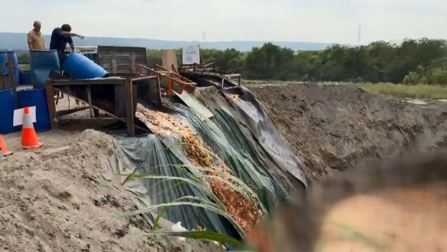 台中爆發非洲豬瘟疫情,全台暫停廚餘養豬,而廚餘處理成為各界關注的焦點。台中市環保局啟動廚餘緊急去化應變措施,開放4處指定掩埋場做堆肥,卻被市議員發現,廚餘直接倒進坑洞內露天堆置,形成「廚餘海」。對此,台中市環保局今(29)日宣布,預計明(30)日將停止使用9處掩埋場去化廚餘。