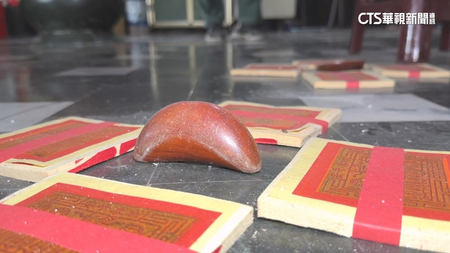 廟宇裡面,這一處拉起紅線,信眾圍在旁邊看了許久,因為有人擲出「立筊」,並非過年期間,出現神奇一幕,讓來參拜40多年的信眾,嘖嘖稱奇,表示這是第一次看到「立筊」。